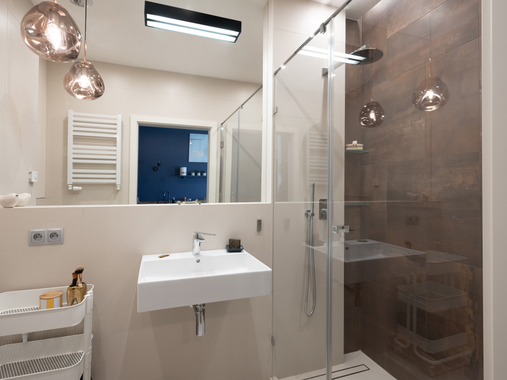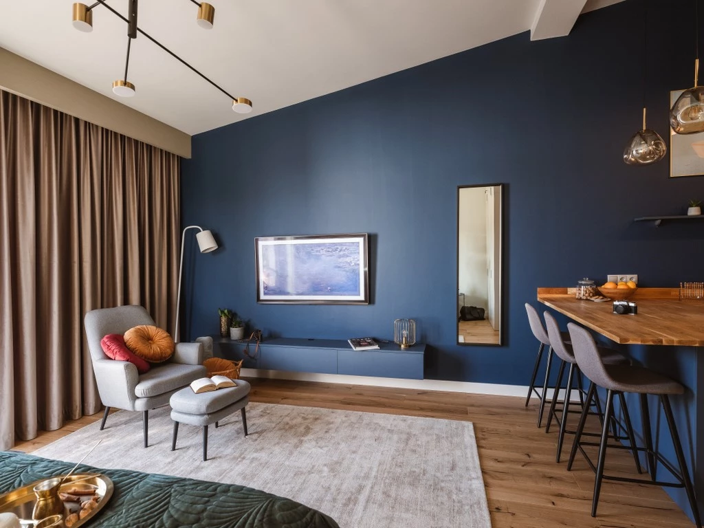 W projekcie liczył się nie tylko wygląd, ale i funkcjonalność! Każdy centymetr przestrzeni ma przemyślaną funkcję a meble zostały dobrane lub zaprojektowane „na wymiar”, aby goście czuli się w Apartamencie komfortowo.