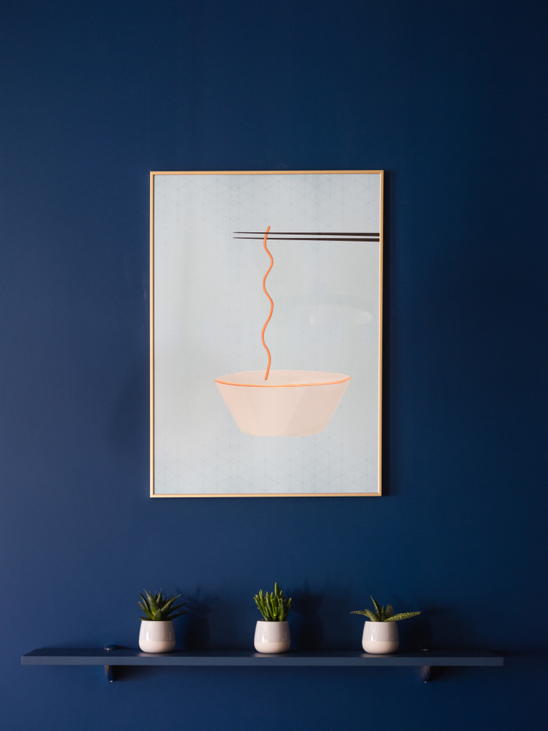Atmosferę ‘’Rajskiego Apartamentu’’ dopełniają specjalnie zaprojektowane grafiki. Kolażowo – syntetyczne obrazy autorstwa Anety Przebindy (Gugu Pain) dodają lekkości i charakteru.