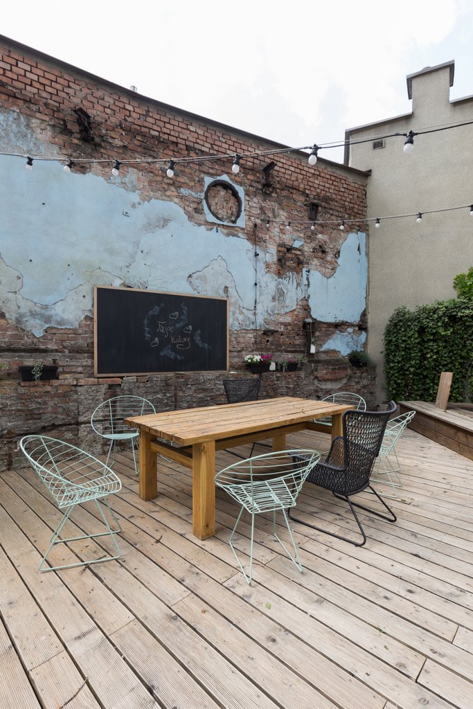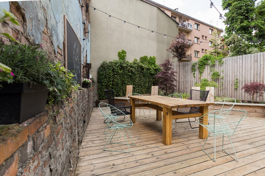 Szczególnym elementem projektu była aranżacja przestrzeni zewnętrznej, inspirowana kulturą Prowansji. Odwołując się do tradycji wspólnego biesiadowania, zaprojektowano strefę umożliwiającą organizację spotkań, wydarzeń firmowych oraz nieformalnych rozmów w otoczeniu naturalnych materiałów, zieleni i elementów przywołujących południową lekkość. Tego rodzaju przestrzeń stała się miejscem odpoczynku, wymiany pomysłów i budowania więzi w codziennym rytmie pracy.
