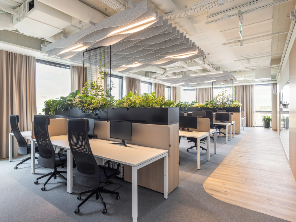 Zanim podpiszesz umowę, sprawdź, czy lokal ma odpowiedni metraż i rozkład pomieszczeń. Nie chodzi tu tylko o ilość stanowisk czy sal konferencyjnych. Dla przyjemnej pracy ważne są m.in. łatwość przemieszczania się, przestronne pomieszczenia dostęp do naturalnego światła i możliwość wydzielenia strefy relaksu. Dobrze zaprojektowane biuro, które odpowiada na potrzeby zespołu, przekłada się na efektywniejszą i sprawniejszą pracę – w dobrym nastroju. Sporym zainteresowaniem cieszy się ostatnio biophilic design. To kierunek w architekturze, który polega na wprowadzaniu naturalnych materiałów, roślinności i rozwiązań inspirowanych przyrodą, w celu poprawy samopoczucia pracowników, zwiększenia ich koncentracji i stworzenia zdrowszego środowiska pracy.