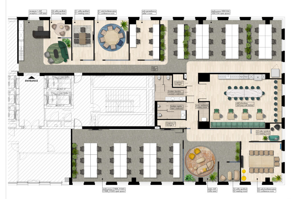 Często obserwujemy firmy, które mylą wielką halę z dobrze zaprojektowaną pracownią. Dobre biuro to równowaga między koncentracją a kolaboracją. Modularne przegrody, elastyczne meble, możliwość szybkiej rearanżacji — to elementy, które pozwolą firmie się rozrastać, bez konieczności zmiany siedziby.